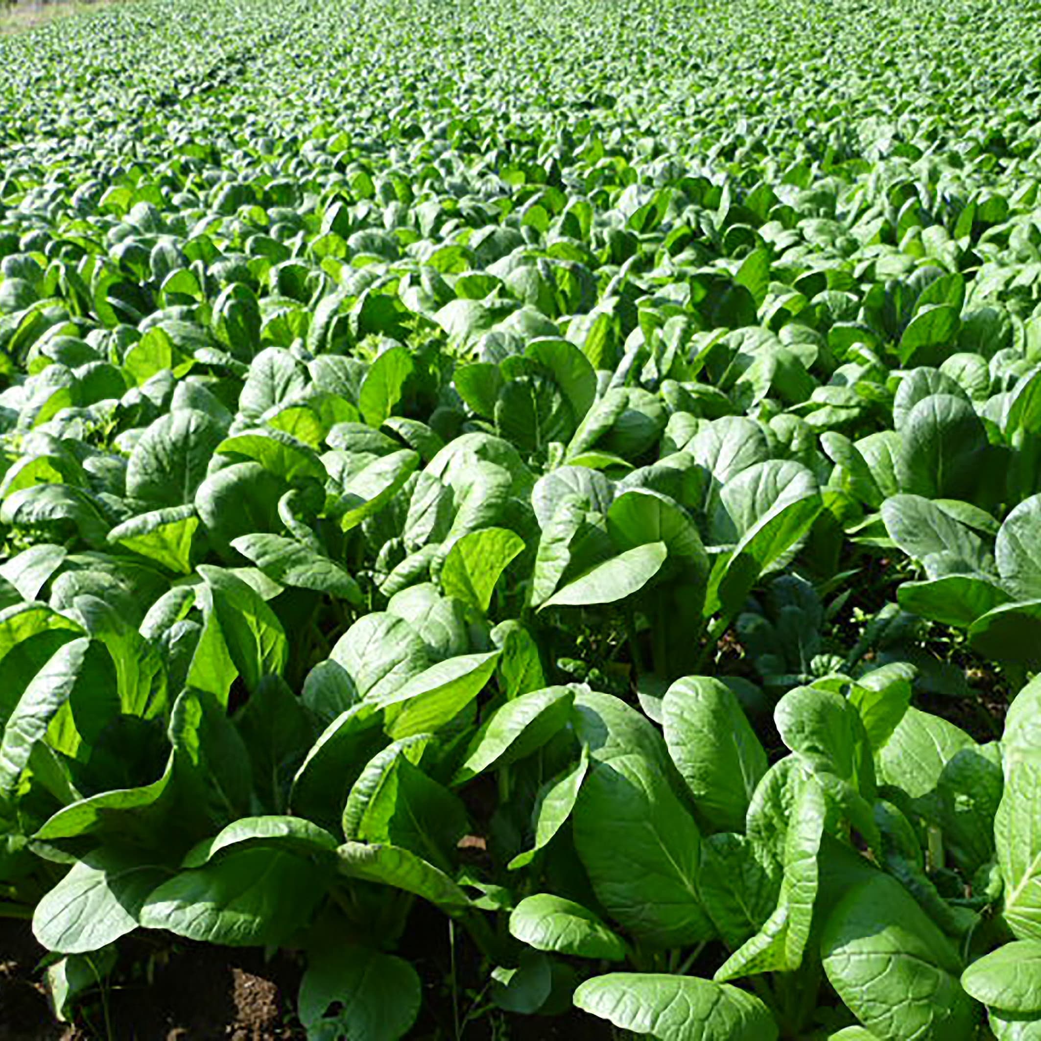 秋と春に収穫できるよう栽培しております。水はけの良い土壌で育つ小松菜は、とてもみずみずしく大きく元気よく生育します。